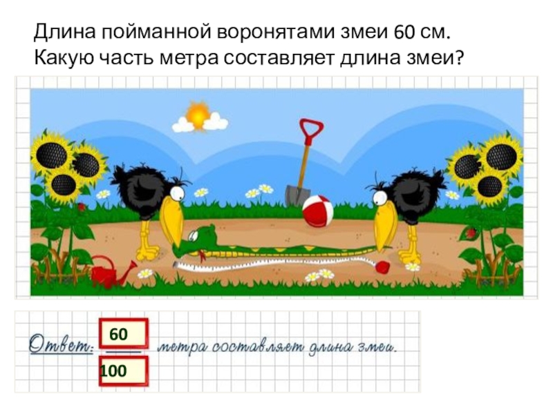 Слайд 30Длина пойманной воронятами змеи 60 см.
