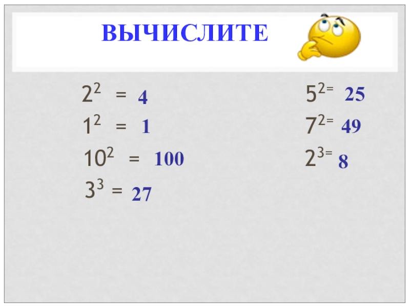 1. Как называется цифра 5 в выражении 52=25.