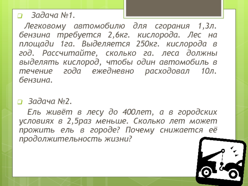 Лес на площади 1га. Выделяется 250кг. кислорода в год. Рассчитайте, сколько га. леса должны выделять кислород, чтобы один автомобиль в течение года ежедневно расходовал 10л. бензина.