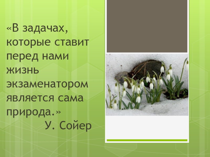 Слайд 1«В задачах, которые ставит перед нами жизнь экзаменатором является сама природа.»