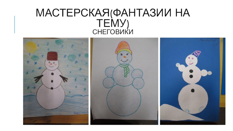 Слайд 4Мастерская(фантазии на тему) снеговики