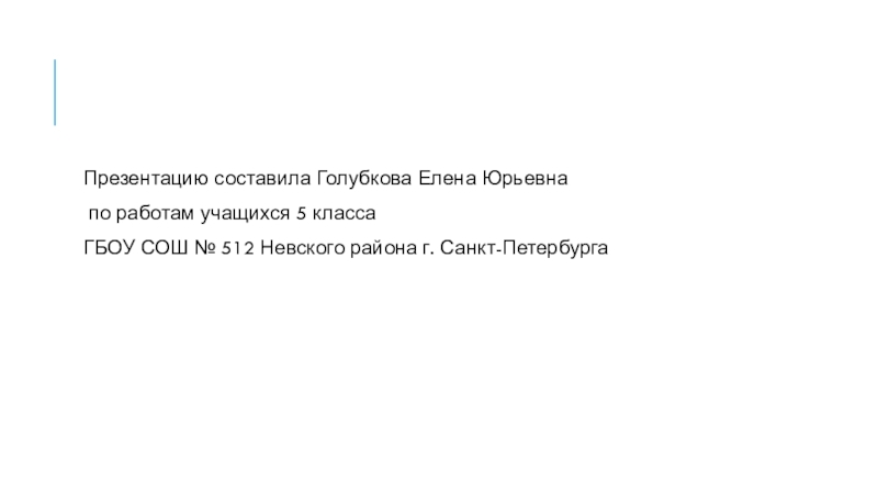 Презентацию составила Голубкова Елена Юрьевна по работам учащихся 5 классаГБОУ СОШ № 512 Невского района г. Санкт-Петербурга