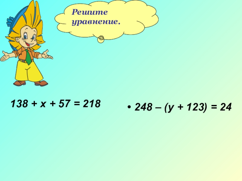 248 – (у + 123) = 24;