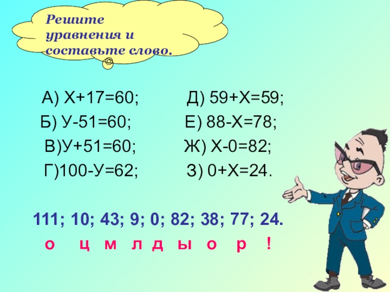 Решите уравнения и составьте слово.