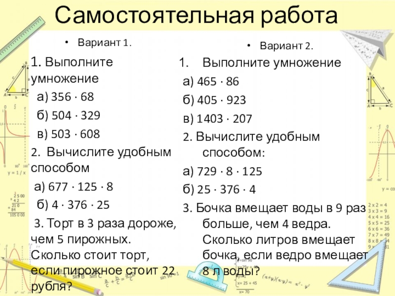 3. Бочка вмещает воды в 9 раз больше, чем 4 ведра. Сколько литров вмещает бочка, если ведро вмещает 8 л воды?
