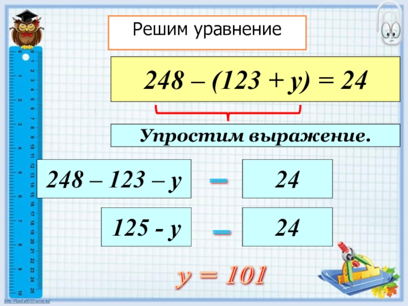 248 - (у + 123)=24;