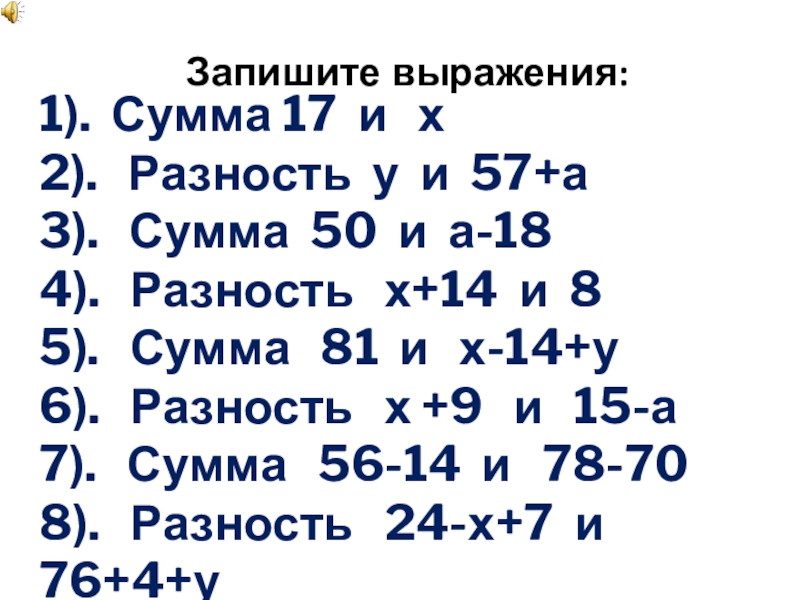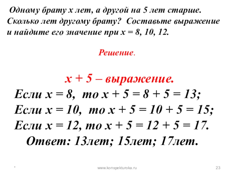 Если х = 10, то х + 5 = 10 + 5 = 15;