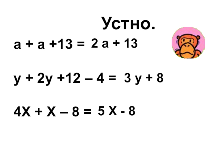 Если х = 8, то х + 5 = 8 + 5 = 13;