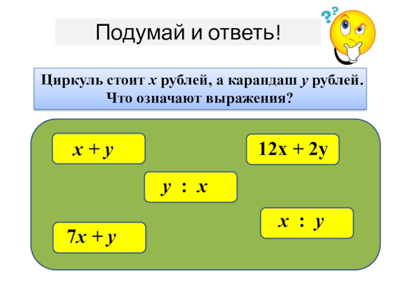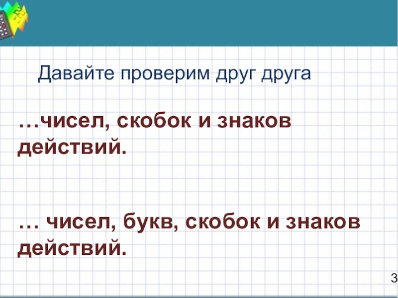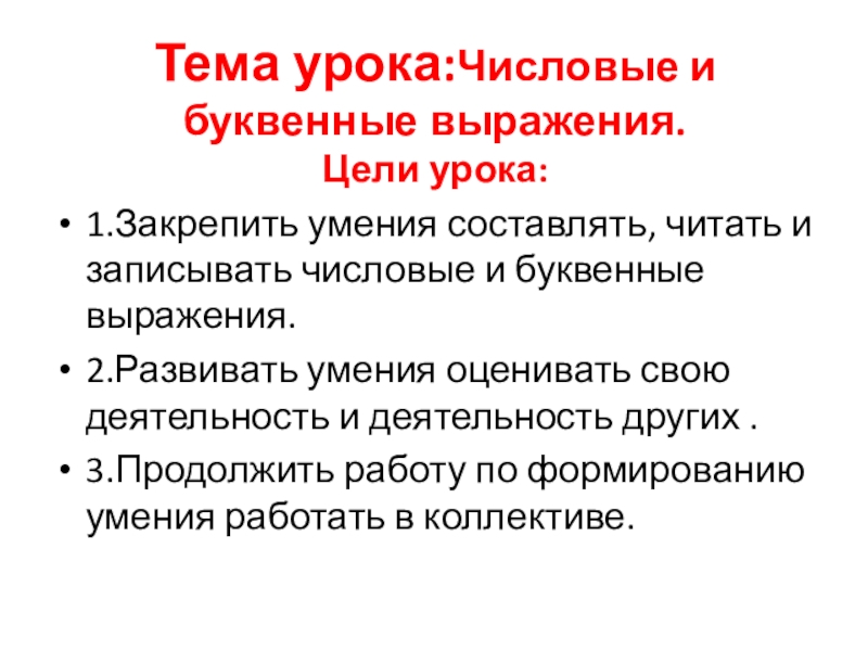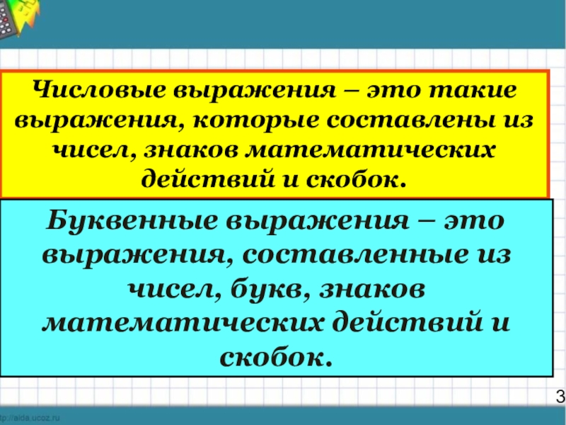 Буквенные выражения – это выражения, составленные из чисел, букв, знаков математических действий и скобок.