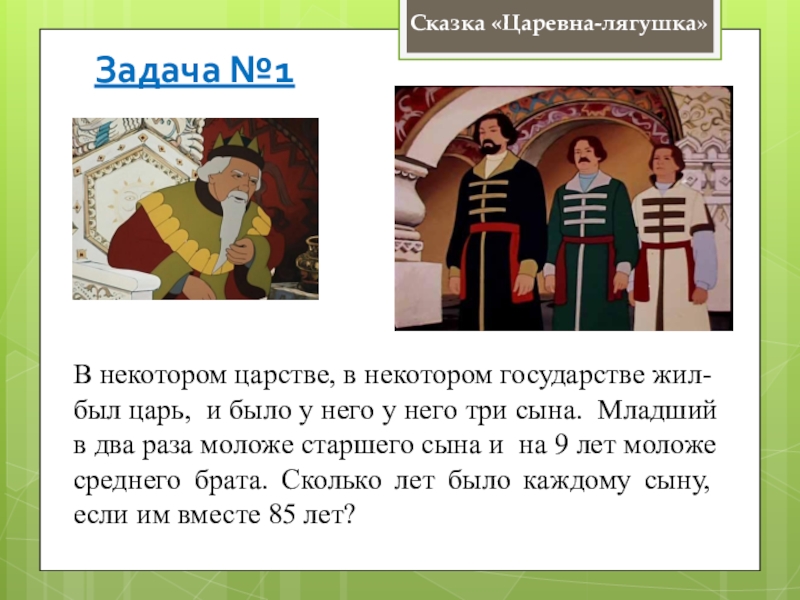 Ответ: старшему - 36 лет, среднему – 28 лет и младшему сыну – 19 лет