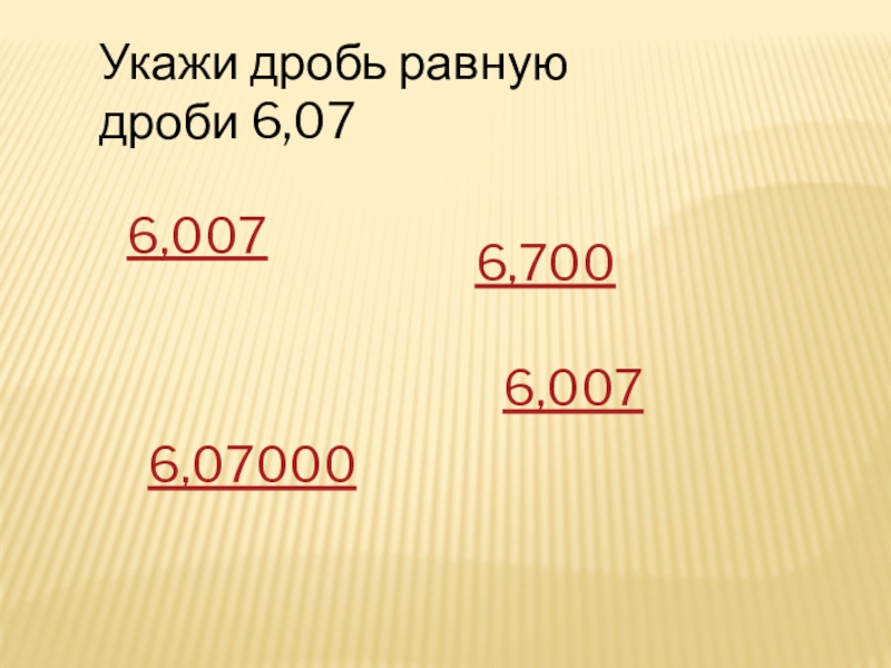 Укажи дробь равную дроби 6,076,0076,7006,070006,007