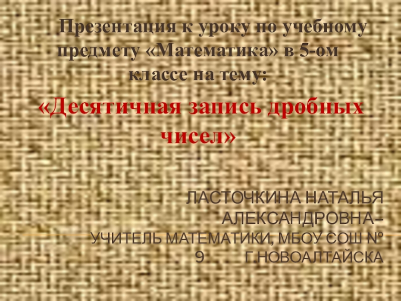 Презентация к уроку по учебному предмету «Математика» в 5-ом классе на тему: