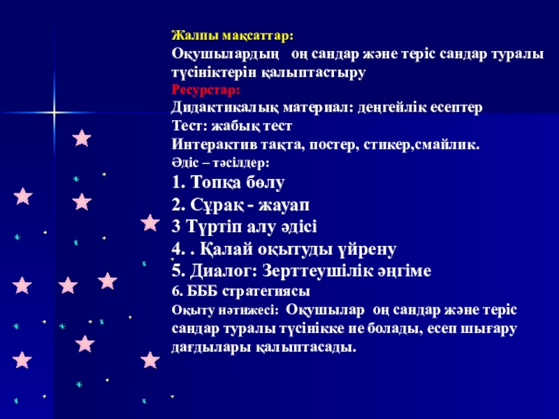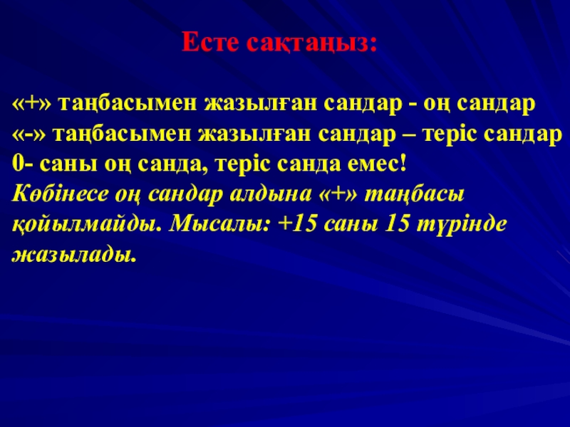 Сабақтың тақырыбы Оң сандар және теріс сандар