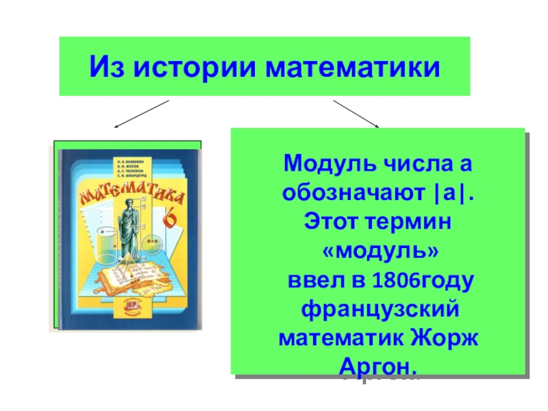 Из истории математикиМодуль числа а обозначают |а|.Этот термин «модуль» ввел в 1806году французскийматематик Жорж Аргон.