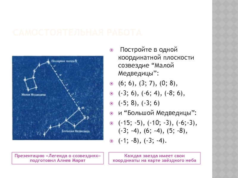 Постройте в одной координатной плоскости созвездие “Малой Медведицы”: