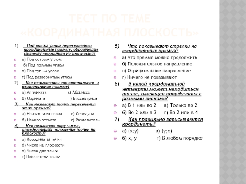 6) В какой координатной четверти может находиться точка, имеющая координаты с разными знаками?