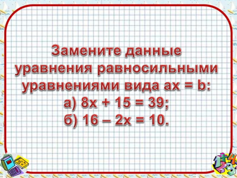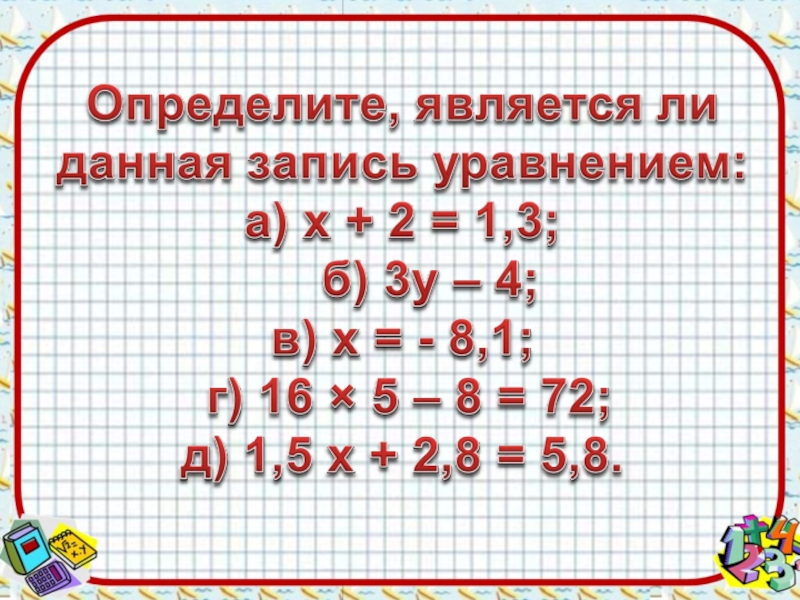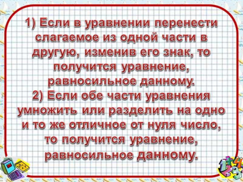 Презентация, доклад по математике 6 класс по теме : Уравнения.
