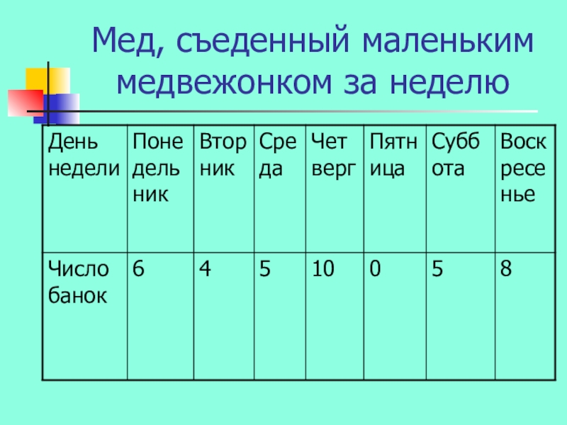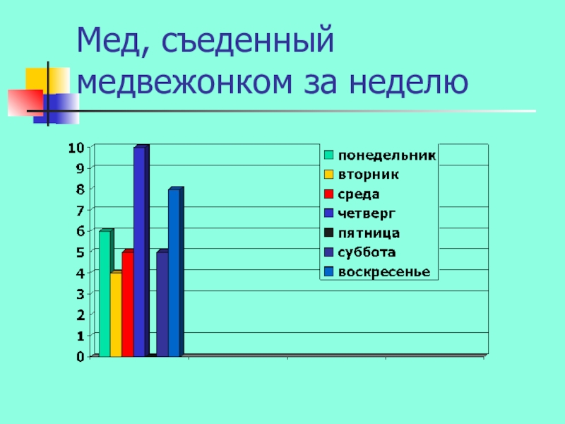Слайд 4Мед, съеденный маленьким медвежонком за неделю
