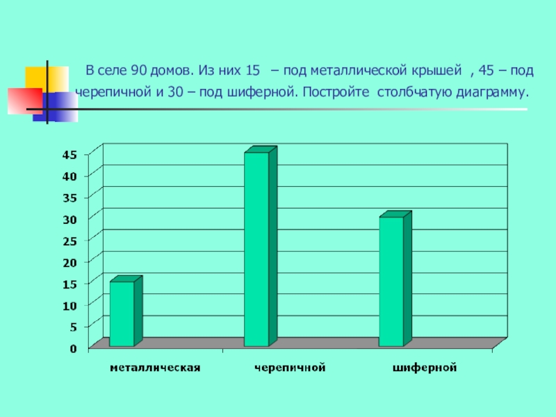 крышей , 45 – под черепичной и 30 – под шиферной. Постройте столбчатую диаграмму.