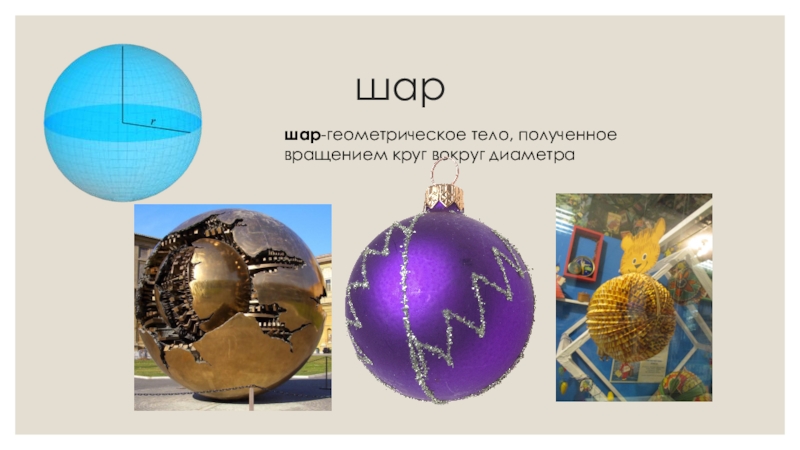 шар-геометрическое тело, полученное вращением круг вокруг диаметра