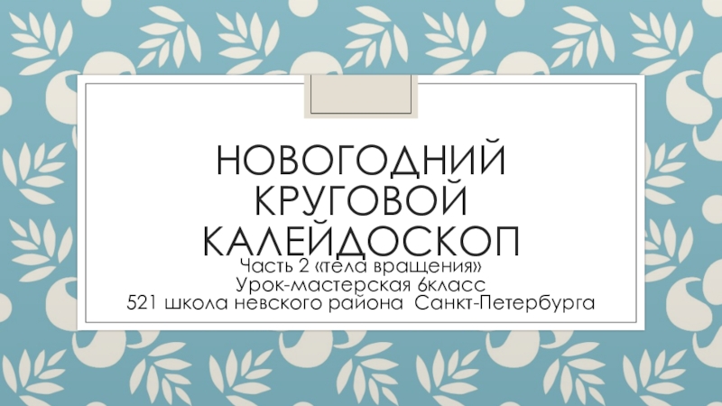 Новогодний круговой калейдоскопЧасть 2 «тела вращения»Урок-мастерская 6класс521 школа невского района Санкт-Петербурга