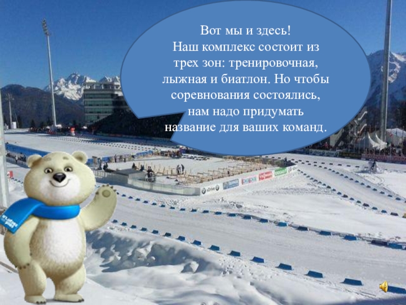Вот мы и здесь!Наш комплекс состоит из трех зон: тренировочная, лыжная и биатлон. Но чтобы соревнования состоялись,