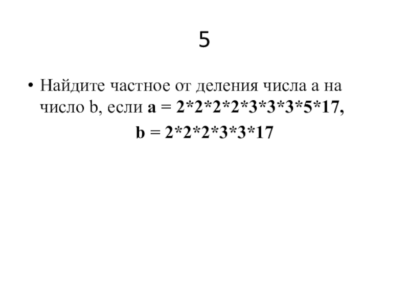 5Найдите частное от деления числа а на число b, если а = 2*2*2*2*3*3*3*5*17, b = 2*2*2*3*3*17