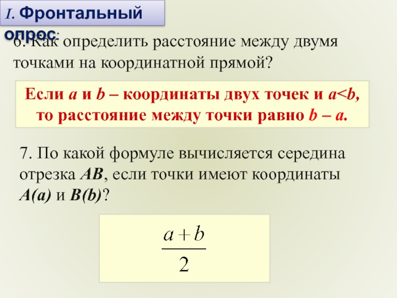 7. По какой формуле вычисляется середина отрезка AB, если точки имеют координаты A(a) и B(b)?
