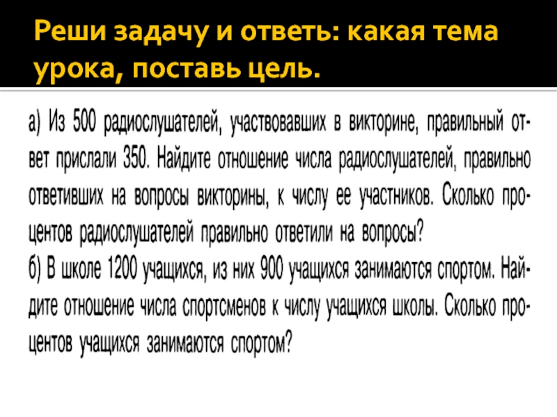Реши задачу и ответь: какая тема урока, поставь цель.