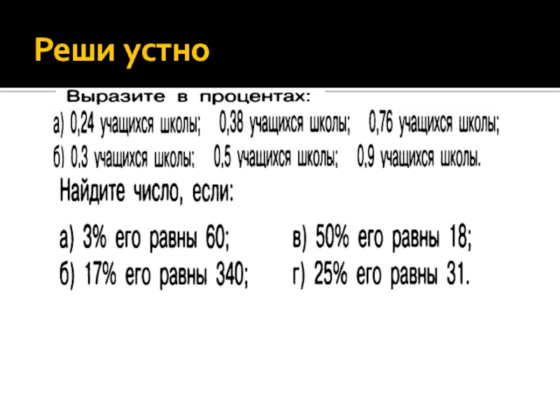 Презентация, доклад по математике 6 класс Выражение отношения в процентах