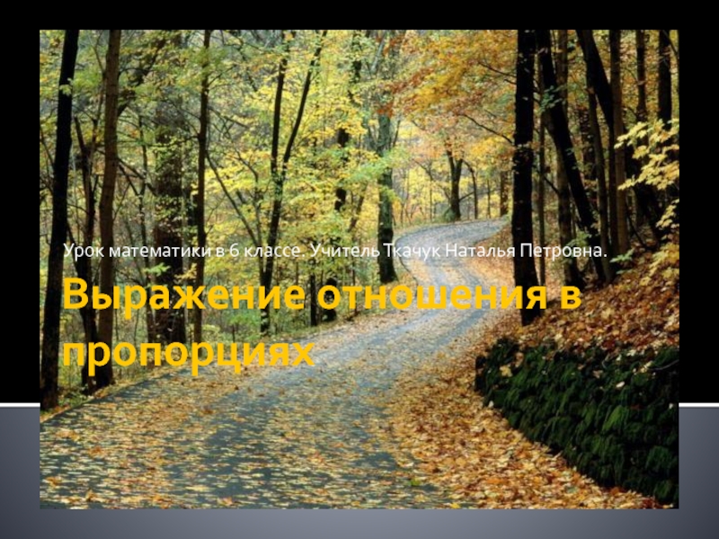 Выражение отношения в пропорцияхУрок математики в 6 классе. Учитель Ткачук Наталья Петровна.