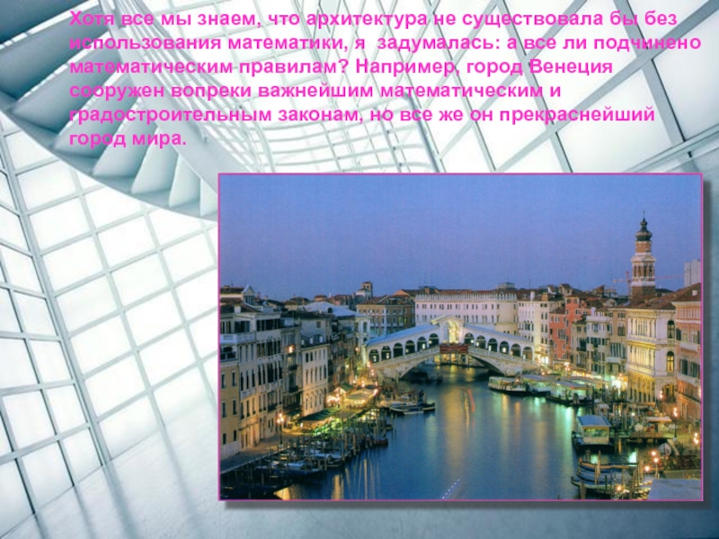 Кажется, никакая математика невозможна описать творческий полет мысли архитекторов.