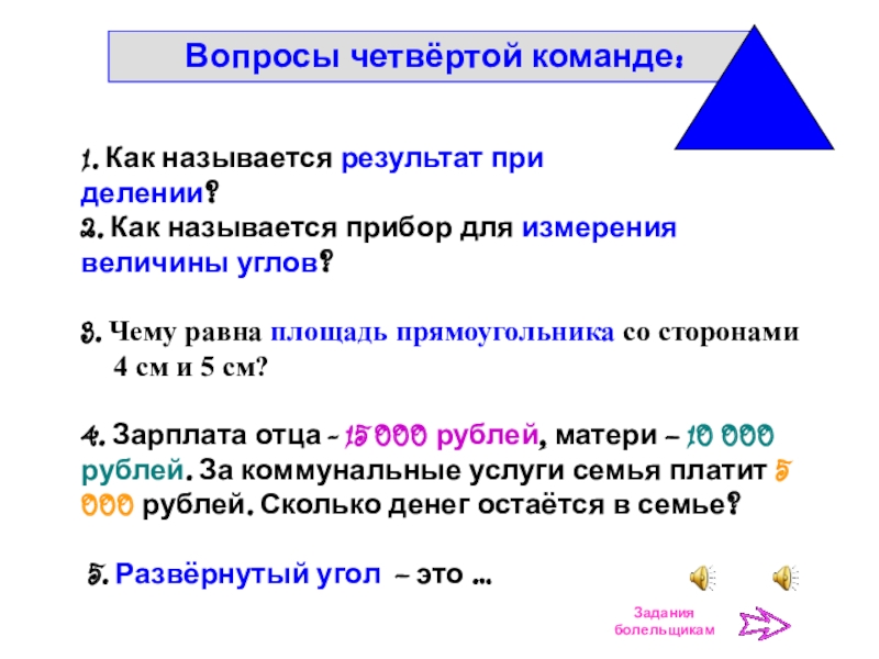 4. Зарплата отца - 15 000 рублей, матери – 10 000 рублей. За коммунальные услуги семья платит 5 000 рублей. Сколько денег остаётся в семье?