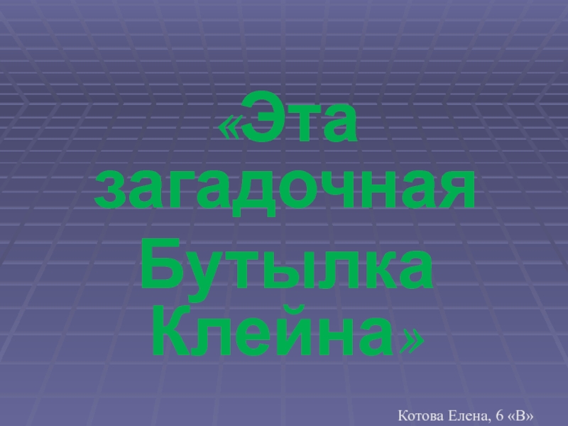 Объект исследования:бутылка Клейна как модель поверхностиПредмет исследования: свойства поверхности бутылки КлейнаЦель работы:сконструировать модель бутылки Клейна, определить и