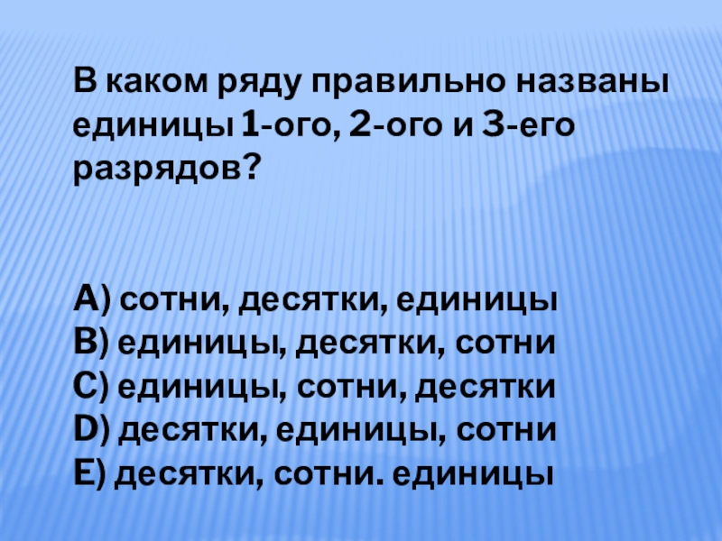 Слайд 8В каком ряду правильно названы единицы 1-ого, 2-ого и 3-его разрядов?