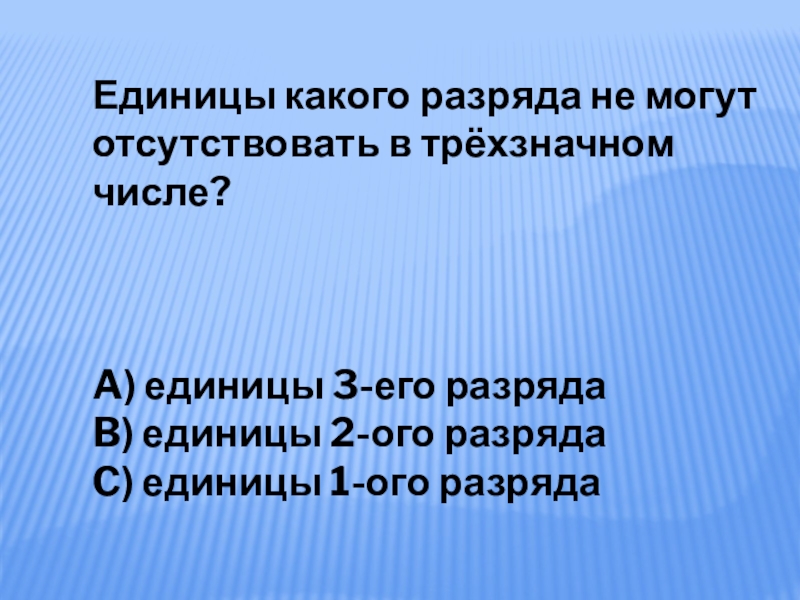 Слайд 7Единицы какого разряда не могут отсутствовать в трёхзначном числе?