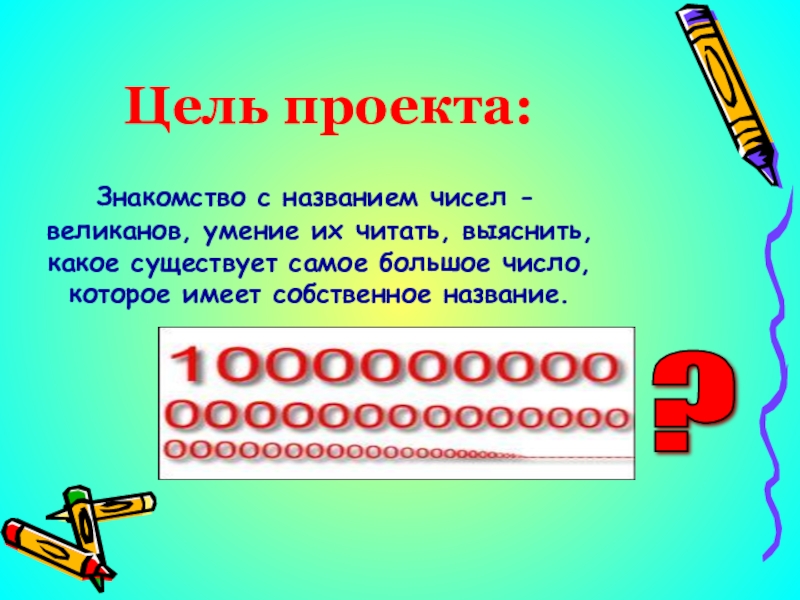 Слайд 4Актуальность: расширить свой кругозор в употреблении чтения многозначных чисел- великанов в