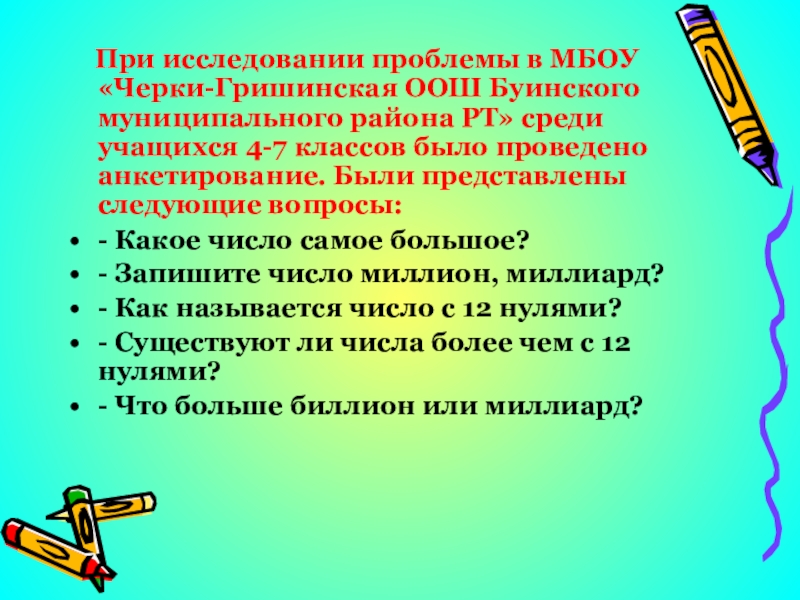 Слайд 19 При исследовании проблемы в МБОУ «Черки-Гришинская ООШ Буинского муниципального