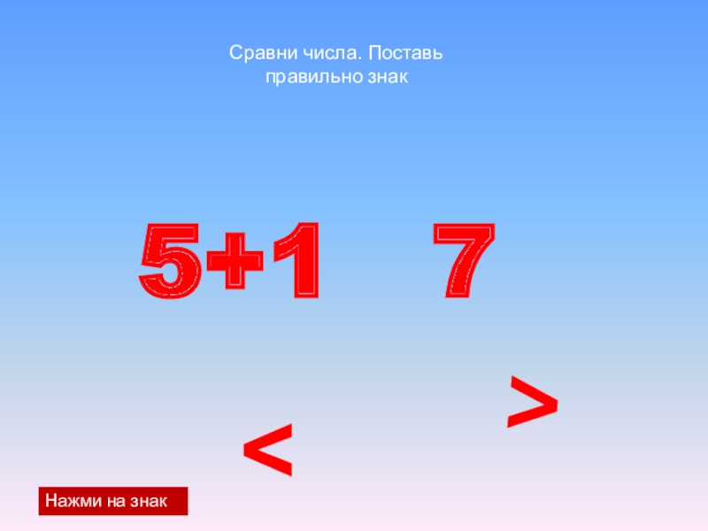 Сравни числа. Поставь правильно знак7-1  4+2>=Нажми на знак