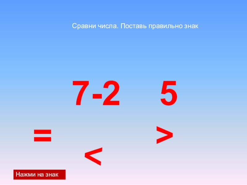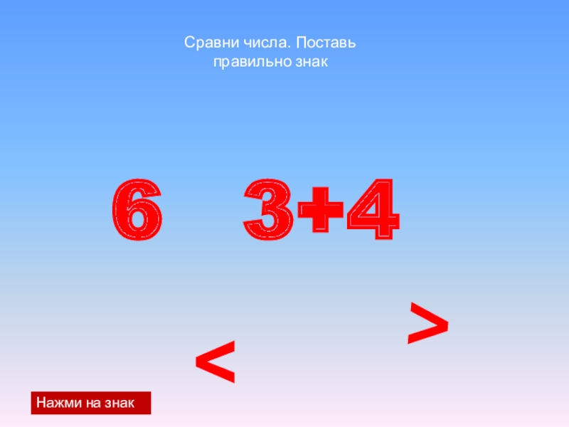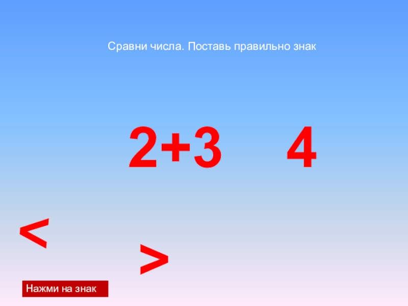 Сравни числа. Поставь правильно знак2+3  4Нажми на знак