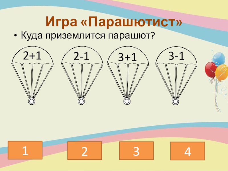 Игра «Парашютист»Куда приземлится парашют?1324