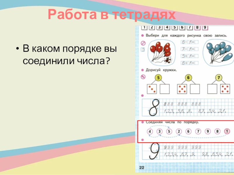 Работа в тетрадяхВ каком порядке вы соединили числа?