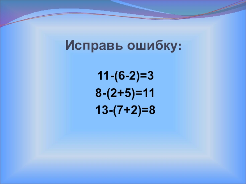 Исправь ошибку:11-(6-2)=38-(2+5)=1113-(7+2)=8