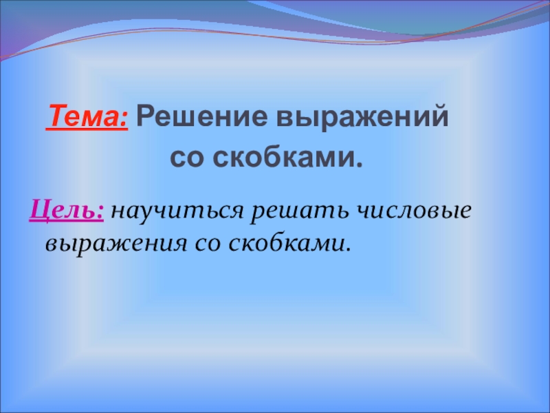 Тема: Решение выражений со скобками. Цель: научиться решать числовые выражения со скобками.