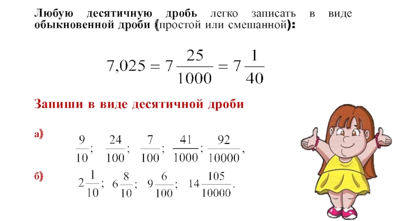 Замени десятичную дробь обыкновенной или смешанным числом.