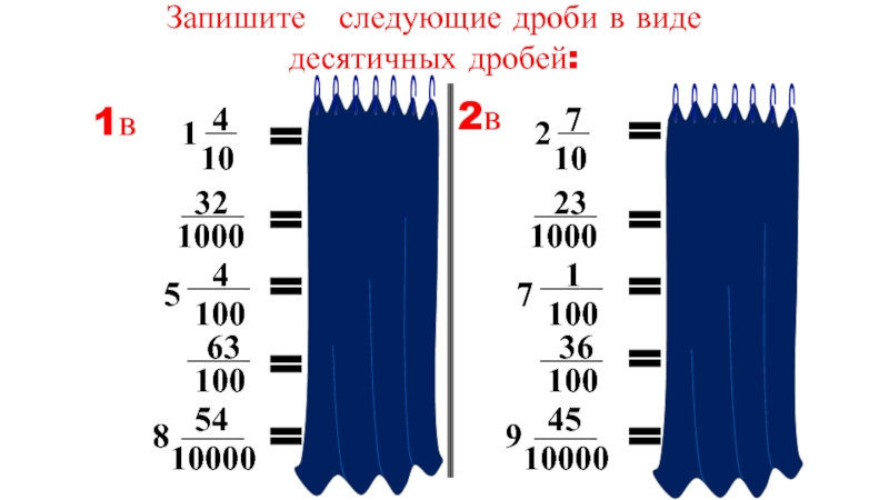 2.Каков знаменатель дроби, если ее десятичная запись содержит 1,2,3 … знаков после запятой?