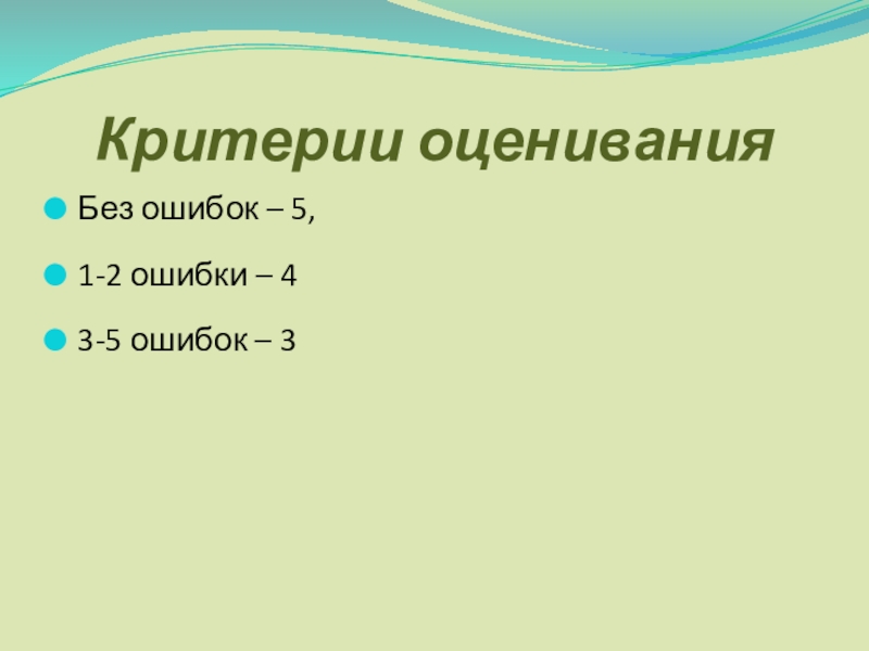 Критерии оцениванияБез ошибок – 5,1-2 ошибки – 43-5 ошибок – 3