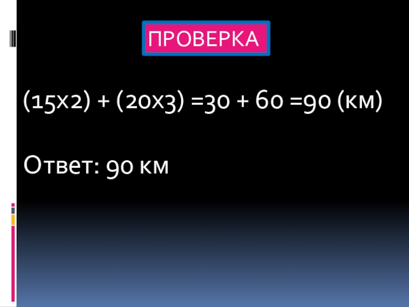 Слайд 14(15х2) + (20х3) =30 + 60 =90 (км)