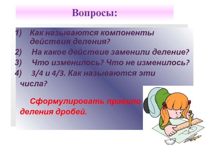 Теперь попробуем сформулировать правило деления двух дробей.