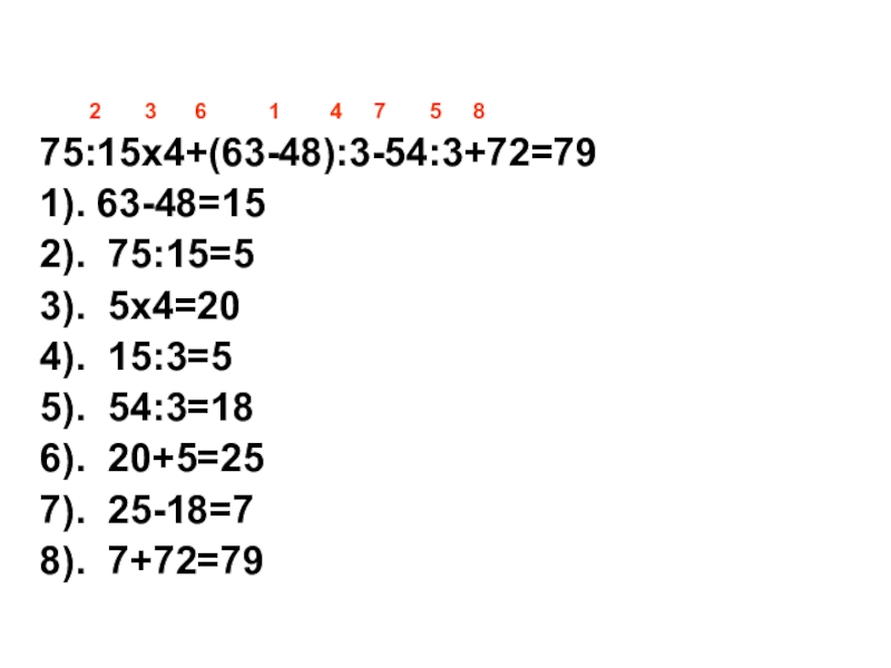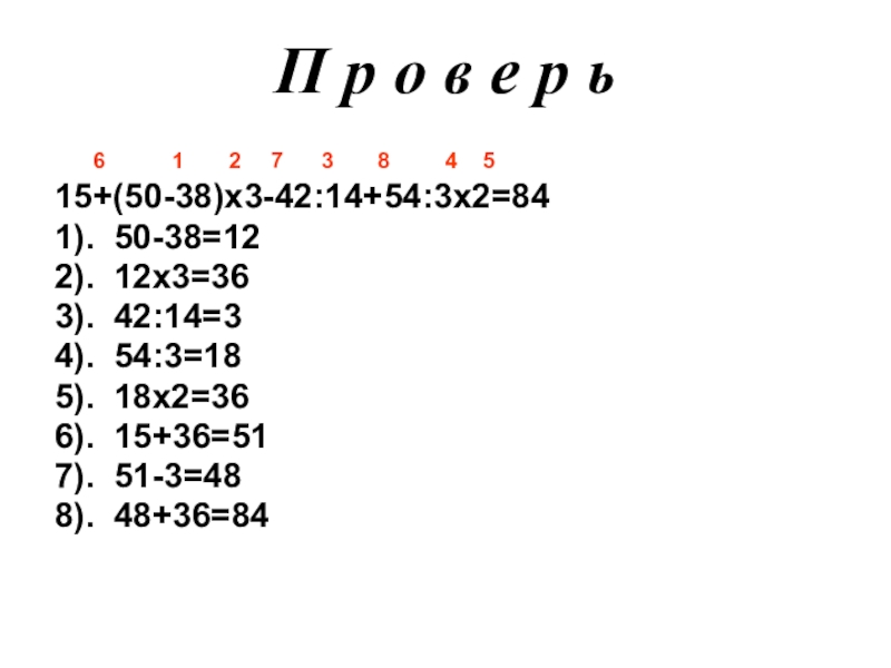 Слайд 111 в. 15+(50-38)х3-42:14+54:3х2=